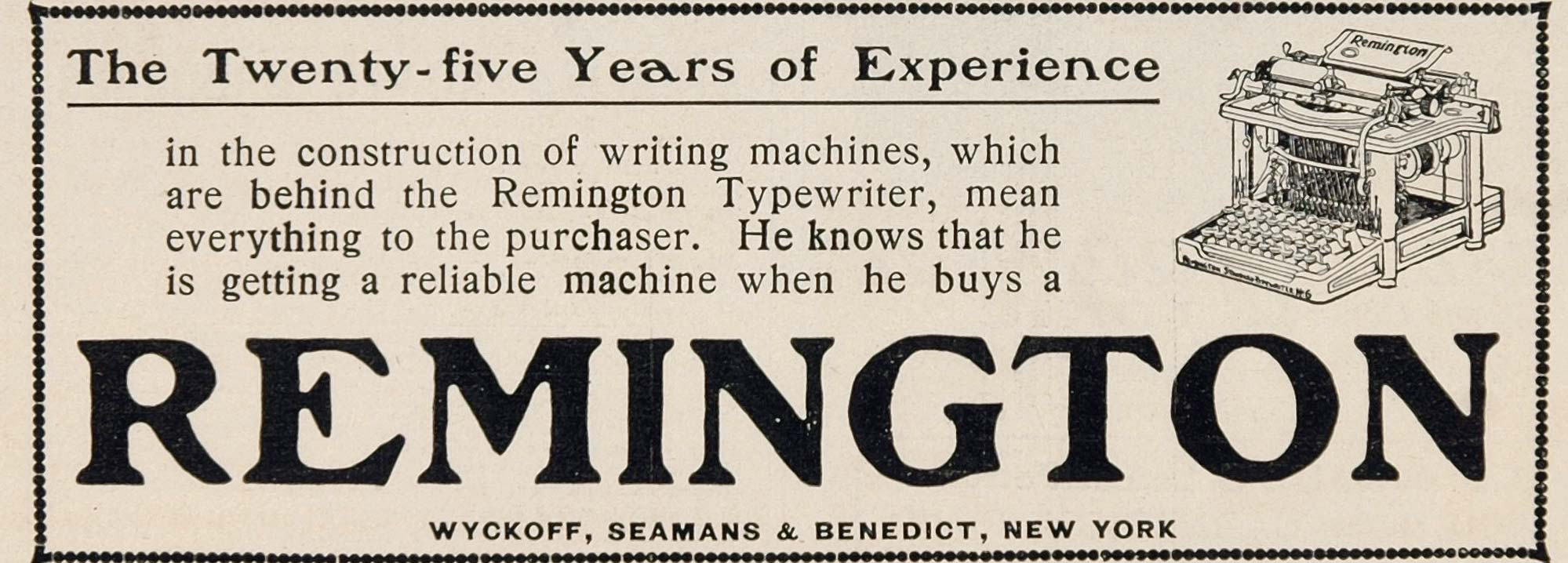 This is an original 1901 print ad for Remington typewriters from Wyckoff, Seamans & Benedict, New York.