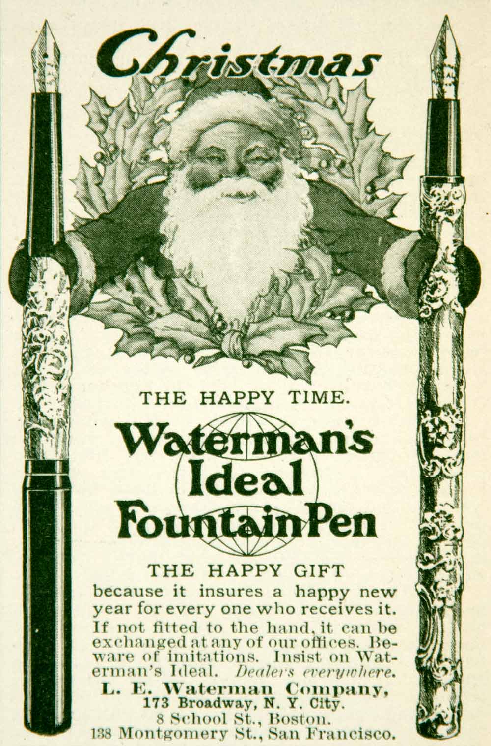 1903 Ad Watermans Ideal Fountain Pen Christmas Gift Santa Present Write YYC2 Genuine Cheap Online