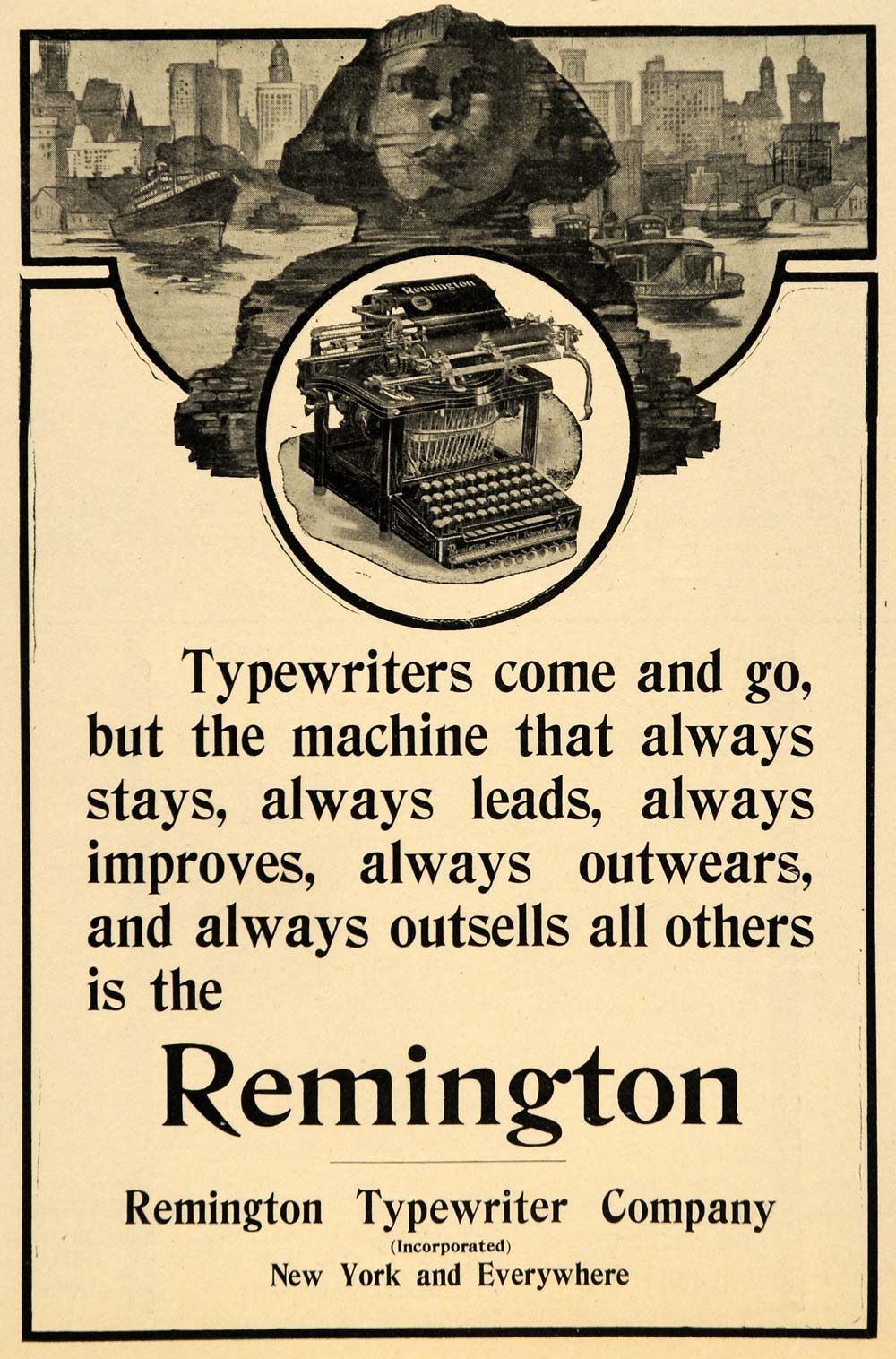 This is an original 1907 black and white print ad for the Remington Typewriter Company located in New York.