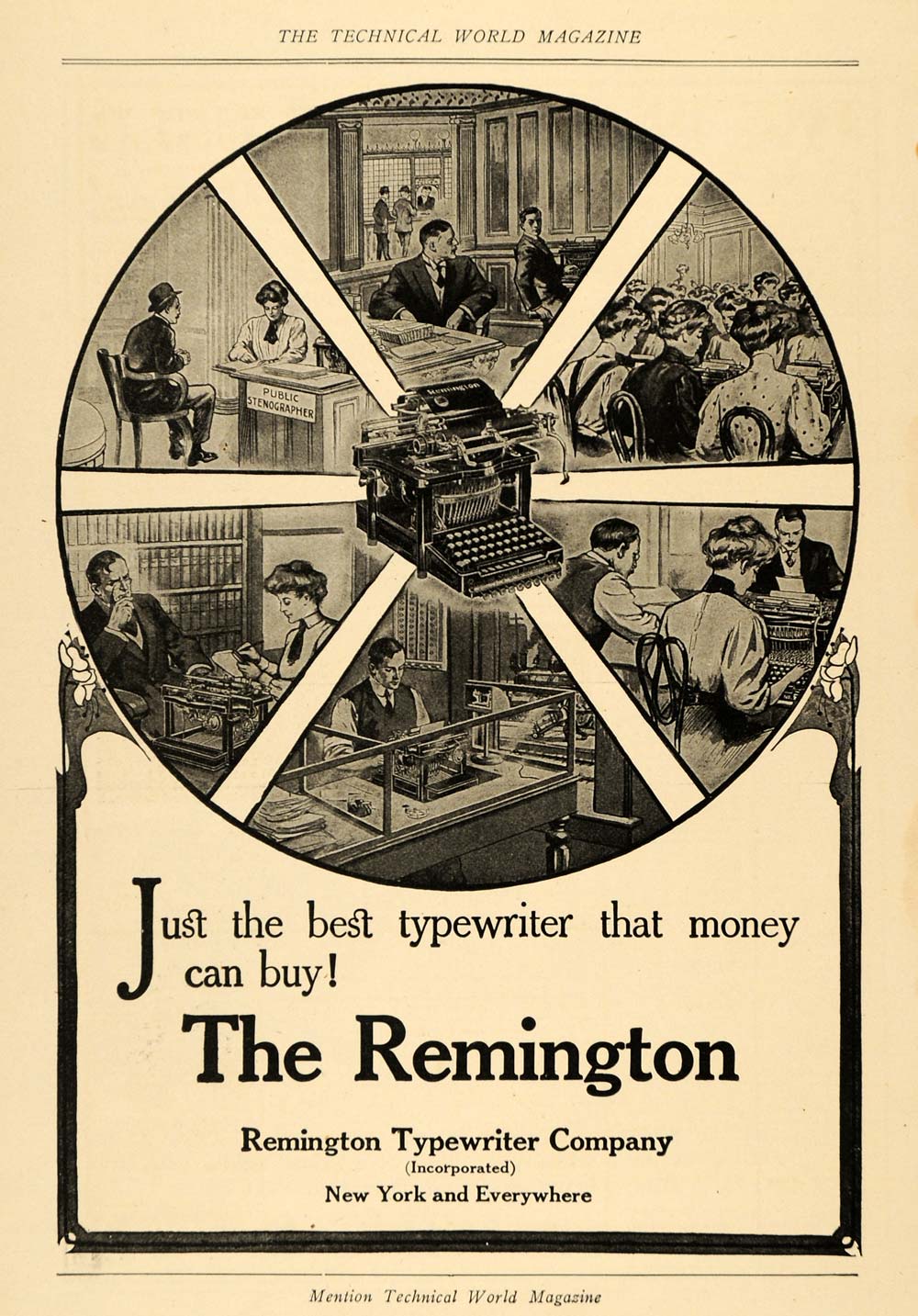Keywords specific to this image: Stenographer, Court, Remington Typewriter Company Vintage Advertising