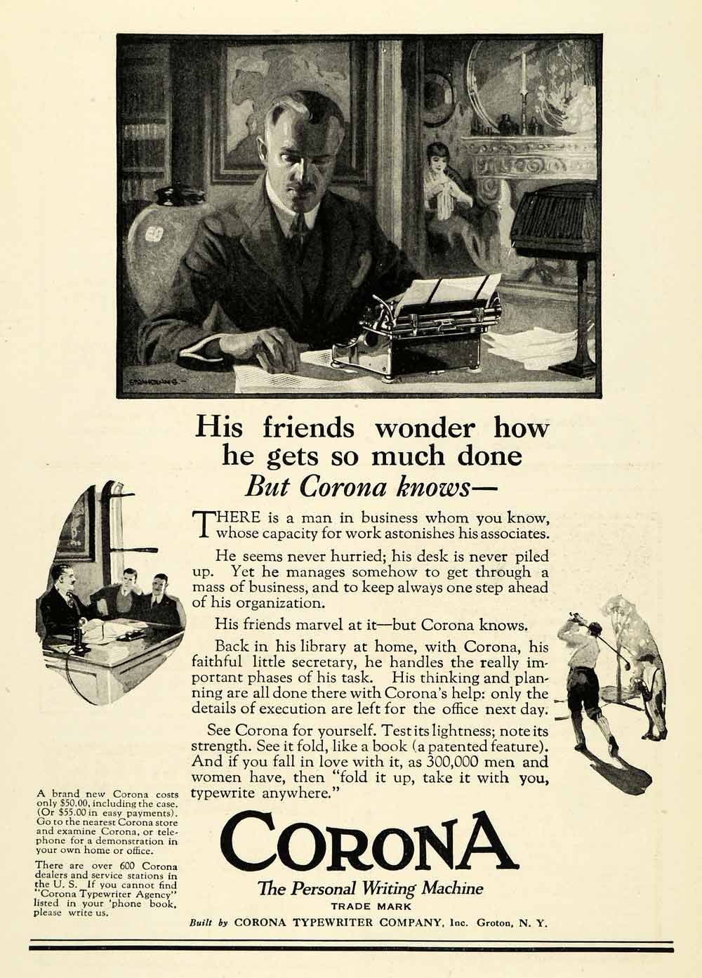 Keywords specific to this image: Vintage Advertising, desk, business, 600 Corona