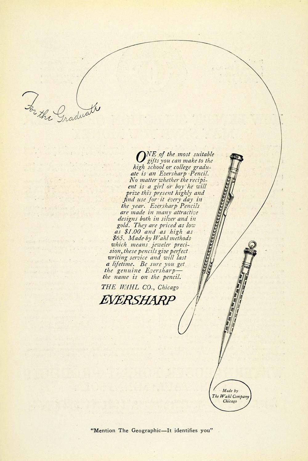 This is an original 1921 black and white print ad for the Wahl Eversharp Pencils from Walh Company located in Chicago, Illinois.