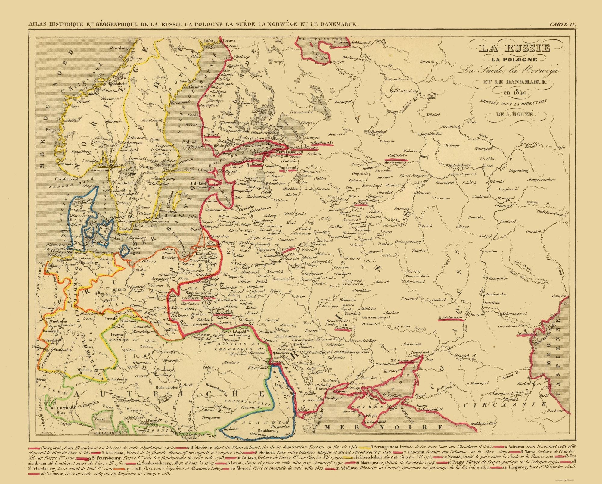 Old International Maps – Russia – Poland – Scandinavia – Houze 1840 – This is an exquisite full-color Reproduction printed on high-quality gloss paper, art paper or canvas.