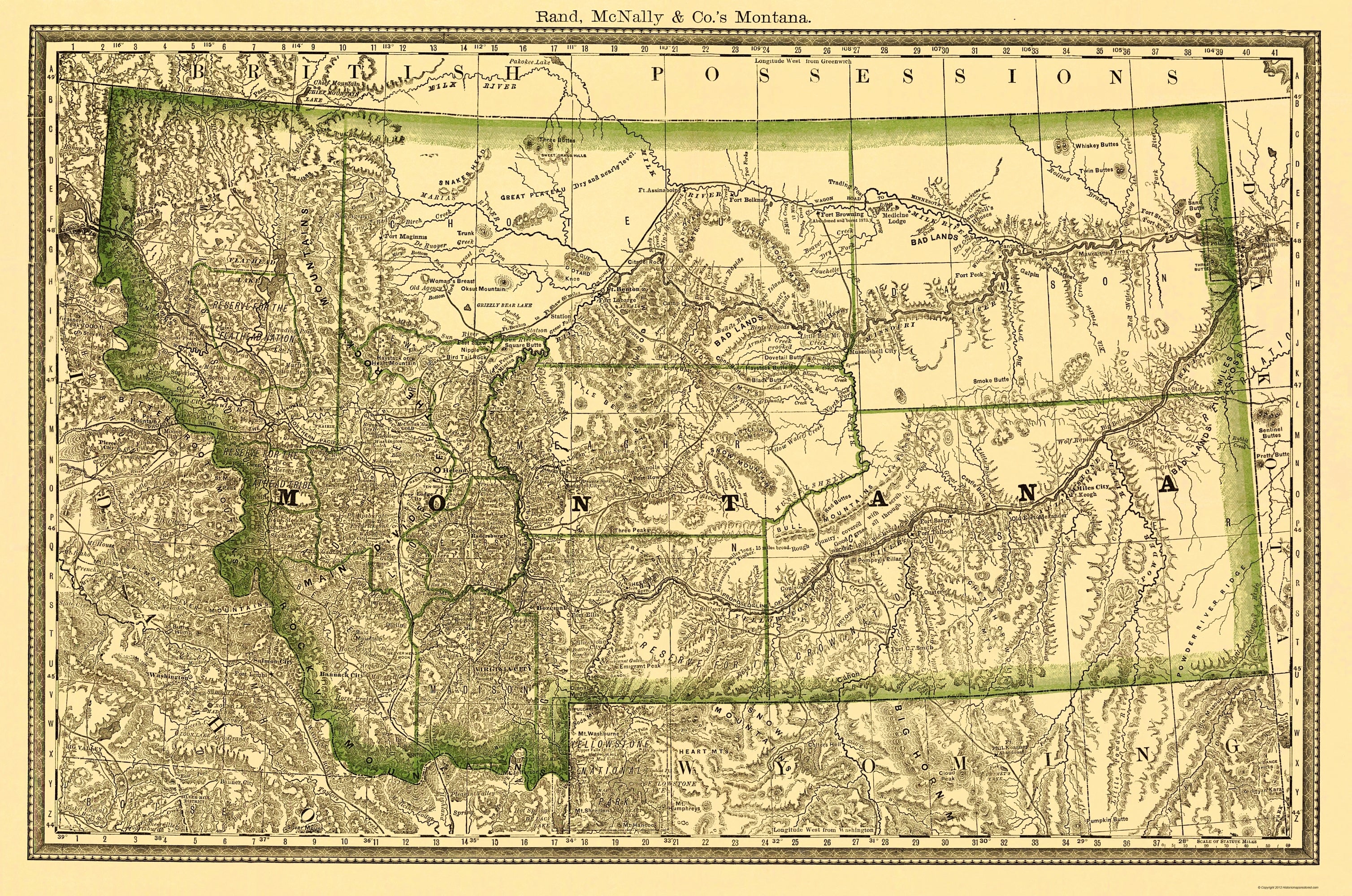 Old State Map – Montana – Rand McNally 1881 – This is an exquisite full-color Reproduction printed on high-quality gloss paper, art paper or canvas.