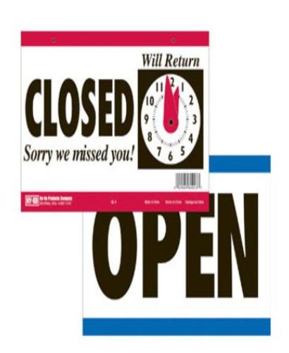 - ‘Closed’ message on one side with clock with changeable times