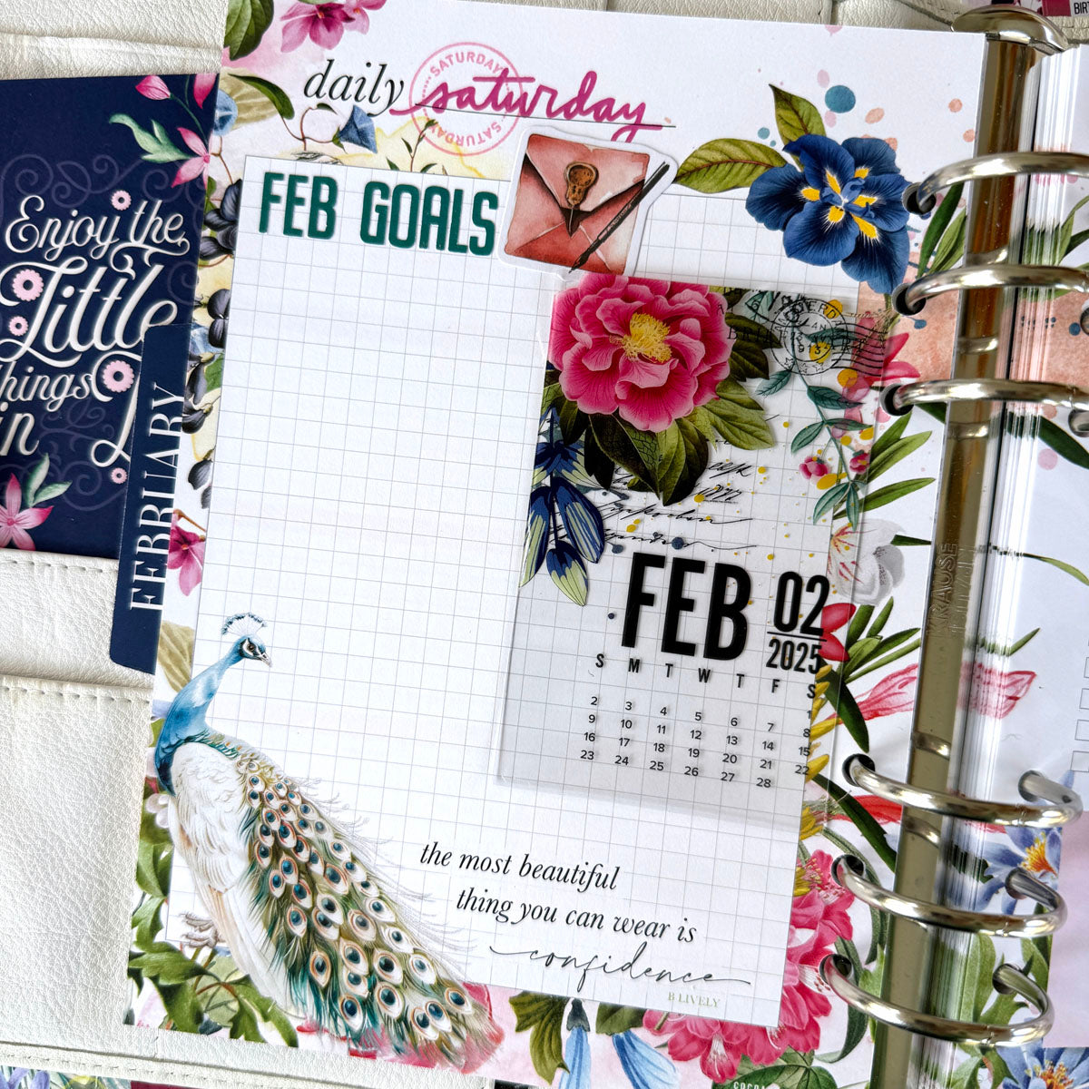Clear calendar card that appeared in the Main Planner Kit for the February 2025 “Penelope” collection.