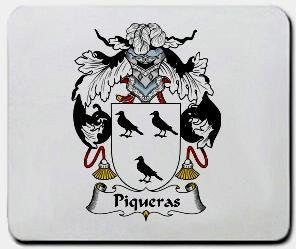 Piqueras Coat of Arms / Family Crest Mouse Pad. Your Family Coat of Arms printed in full color on a high quality Mouse mat.