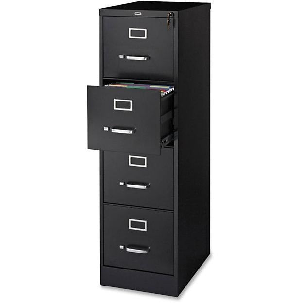 (Scratch & Dent) Lorell Commercial-grade Vertical File – 15″ x 22″ x 52″ – 4 x File Drawer(s) – Letter – Lockable, Ball-bearing Suspension – Black